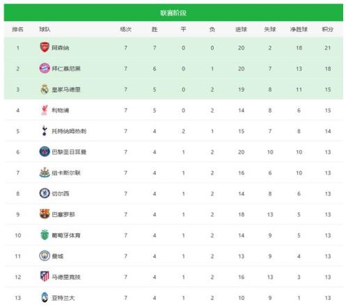2025-26賽季歐冠聯(lián)賽階段前7輪,6-13位競爭極為慘烈,巴黎圣日耳曼、紐卡、切爾西、巴薩、葡萄牙體育、曼城、馬競、亞特蘭大8支球隊,都是拿到13分,殺得昏天暗地。