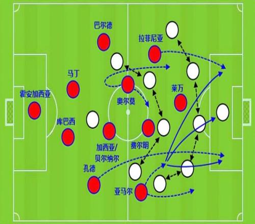 在比賽中,奧爾莫和費爾明都能送直塞球,相比之下,費爾明更直接,喜歡給前鋒,奧爾莫則有一定的提前量,能夠策動邊路加速。