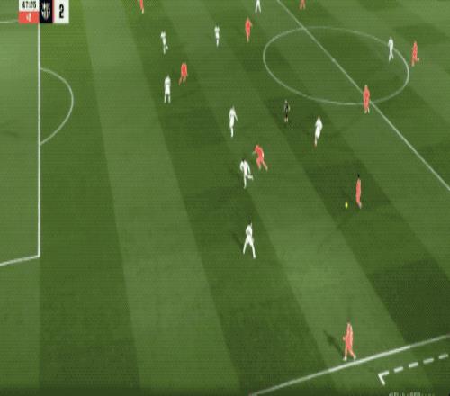 第40分鐘,浪費了一個又一個機會的費蘭·托雷斯終于將球打進,德容的助攻相當(dāng)無私,費蘭無人盯防,推射破門。