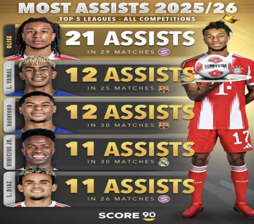 最近Score90做了五大聯(lián)賽、所有賽事口徑的助攻盤點(diǎn)。2025/26賽季還在進(jìn)行中,奧利塞這段時(shí)間的表現(xiàn)已經(jīng)把“助...