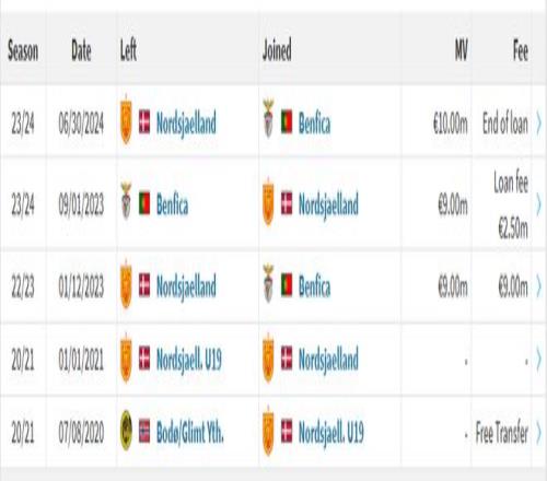 2023年1月,本菲卡以900萬歐的價格買下了這位新星;據(jù)《足球經(jīng)理》游戲的數(shù)據(jù),他當(dāng)時是《足球經(jīng)理2023》中“被簽下次數(shù)最多的球員”。這也令眾多的足球迷對這位挪威球員印象深刻。
