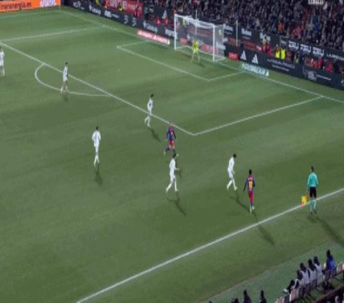 第39分鐘,德容前場(chǎng)斷球后,分給了右路的亞馬爾,西班牙天才少年冷靜推射建功,幫助巴塞羅那取得了1-0的領(lǐng)先。