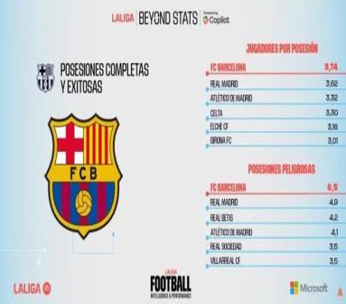 根據(jù)西甲官方列出的統(tǒng)計(jì)數(shù)據(jù),巴薩是本賽季西甲射門轉(zhuǎn)化率最高的球隊(duì),也是控球涉及人數(shù)、創(chuàng)造威脅次數(shù)最多,成功...