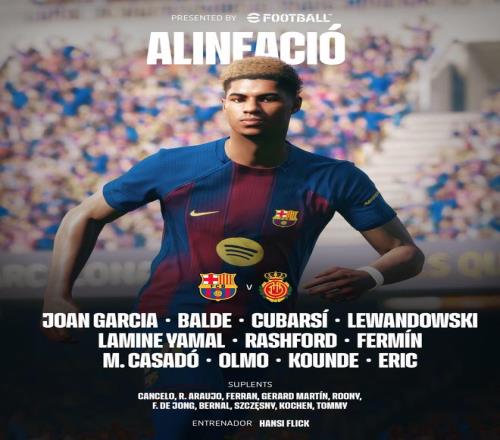 巴薩vs馬略卡:亞馬爾、萊萬、拉什福德首發(fā),奧爾莫出戰(zhàn)