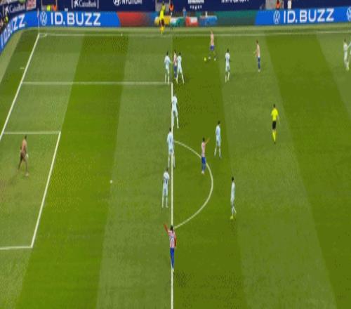 第83分鐘,格列茲曼鞋尖越位,轉(zhuǎn)播給出半自動(dòng)越位系統(tǒng)畫面