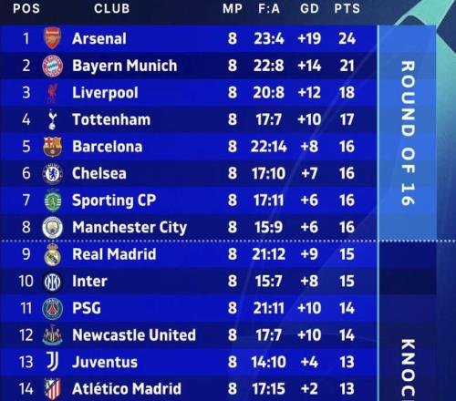 熱刺在英超聯(lián)賽中保級(jí),在歐冠中則判若兩隊(duì)。熱刺5勝2平1負(fù)積17分,高居歐冠36強(qiáng)中的第4位,排在英超對(duì)手切爾西、曼城、紐卡之前。另外西超三強(qiáng)中的巴薩16分第5,皇馬15分第9,馬競(jìng)13分第14??梢哉f(shuō)皇馬本賽季無(wú)緣歐冠前8名直接出線與熱刺的存在有直接關(guān)系,如果熱刺在歐冠跟在英超中一樣狼狽,那熱刺將無(wú)法拿到直通歐冠淘汰賽的名額,皇馬將上升1名直通16強(qiáng)。