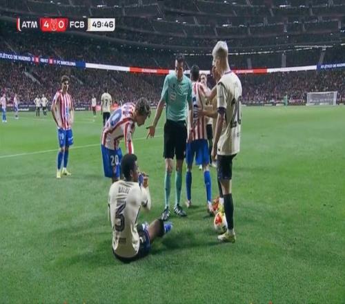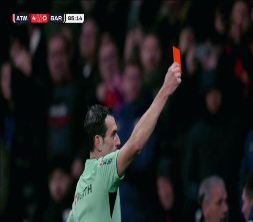 馬競(jìng)?cè)€回防,西蒙尼換上了更多的防守球員,令巴薩的推進(jìn)更加困難。第85分鐘,埃里克加西亞直接被紅牌罰下,隨即產(chǎn)生的各種爭(zhēng)議,引發(fā)了一系列的沖突,裁判連續(xù)出示多張黃牌平息。