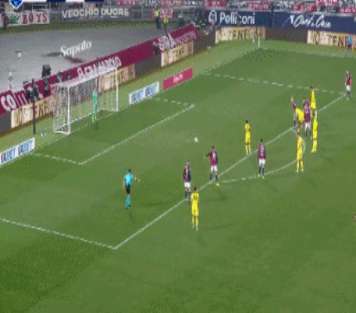 第17分鐘,差之毫厘,福法納前點(diǎn)頭球攻門擦柱而出