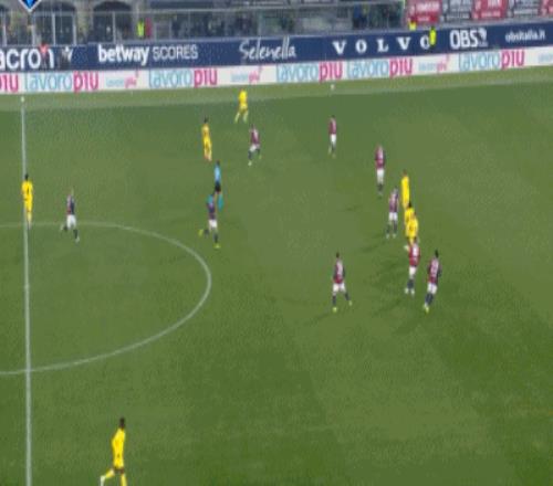 第48分鐘,博洛尼亞邊線球失誤,拉比奧斷球破門,米蘭3-0博洛尼亞
