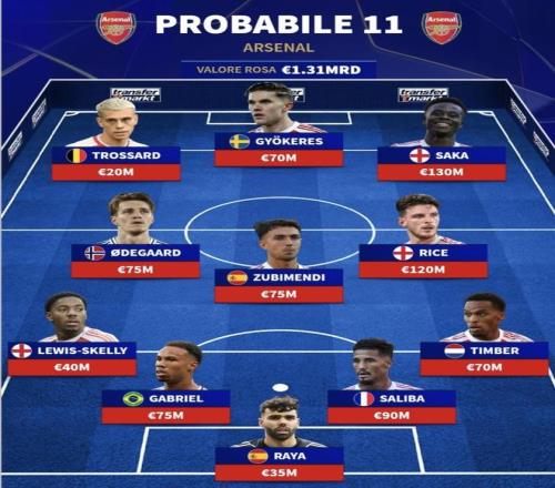阿森納 | 預(yù)測(cè)首發(fā)11人(陣容身價(jià):13.1億歐元)
