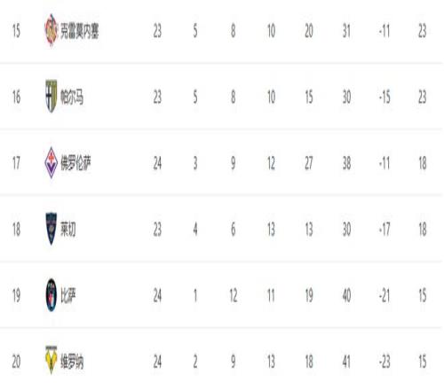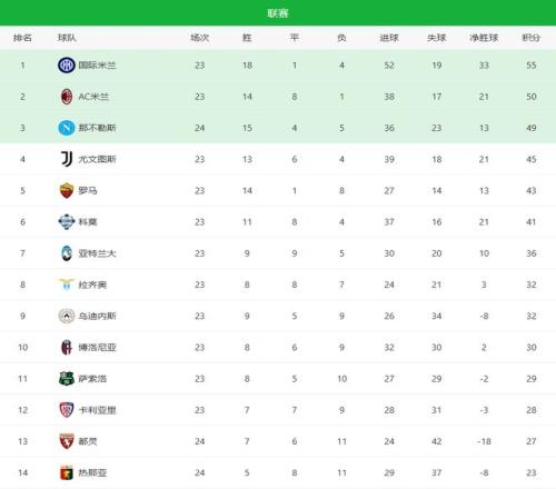 隨著那不勒斯32絕殺+紫百合22!意甲最新積分榜:25名差7分