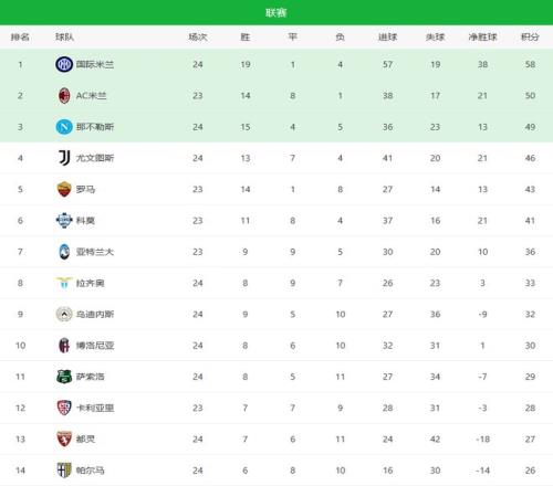 隨著國米50+尤文22!意甲最新積分榜米蘭距榜首8分35名差7分