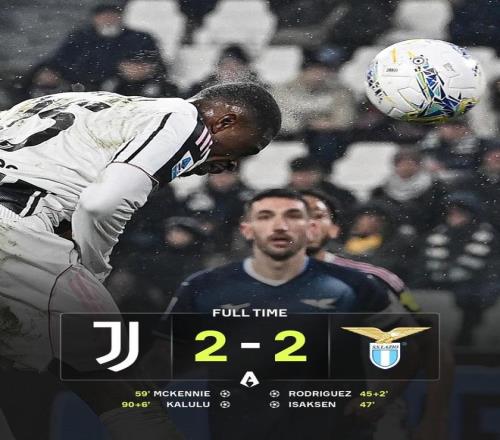 拉齊奧一度2-0領(lǐng)先,尤文在絕境中由麥肯尼和卡盧盧連追兩球,補(bǔ)時完成2-2絕平。