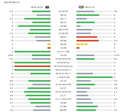 北京時間2月8日意大利足球頂級聯(lián)賽第24輪,博洛尼亞主場對陣帕爾馬。比賽中博洛尼亞一名球員吃到紅牌,帕爾馬一名球員累計兩張黃牌被罰下。下半場補時階段,帕爾馬一名球員助攻克里斯蒂安-奧多涅斯打入全場唯一進球。最終比分博洛尼亞0-1帕爾馬。