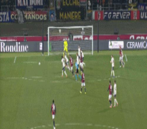 第33分鐘,博洛尼亞左側(cè)角球,卡斯特羅搶點(diǎn)破門,博洛尼亞1-0拉齊奧