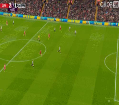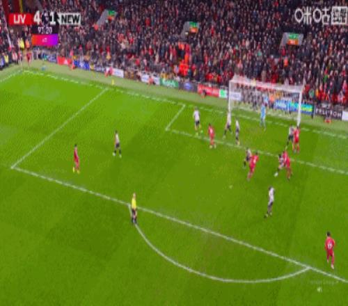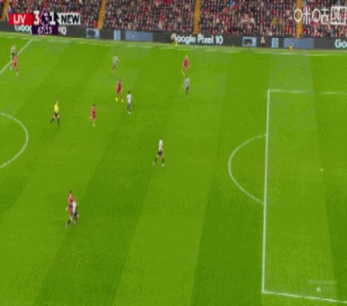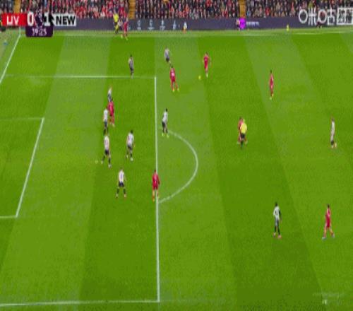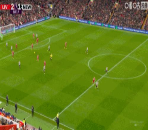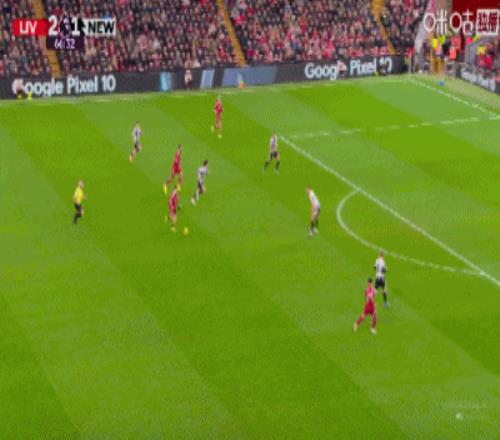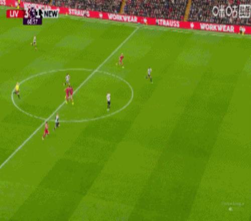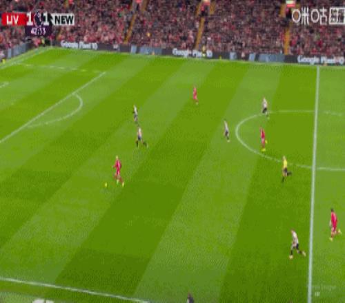 第43分鐘,三分鐘兩球,?;倏说蜕溥h(yuǎn)角梅開(kāi)二度,利物浦2-1紐卡