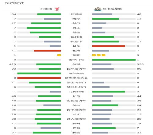 第41分鐘,?;倏私麉^(qū)推射破門(mén),利物浦1-1扳平紐卡