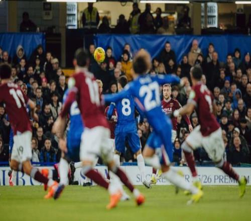 北京時(shí)間2月1日,英超第24輪,切爾西主場迎戰(zhàn)西漢姆聯(lián)。比賽中。圖源:視覺中國上半場第7分鐘,鮑恩在右側(cè)起球傳中,...