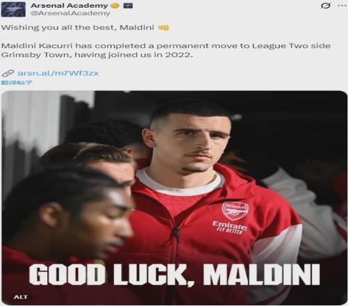 官方:阿森納宣布馬爾蒂尼-卡庫里轉(zhuǎn)會加盟了英乙球隊(duì)格里姆斯比。