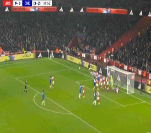 第90+8分鐘,哈弗茨過掉桑切斯,隨后低射破門,阿森納1-0切爾西