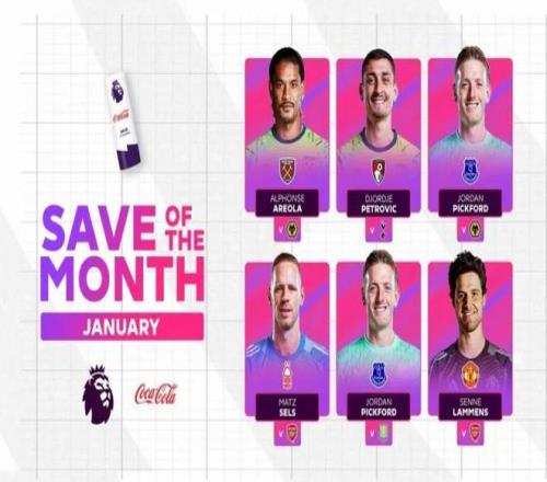 拉門斯在對陣阿森納比賽中的撲救入圍英超1月最佳撲救候選。