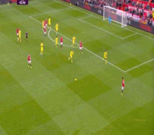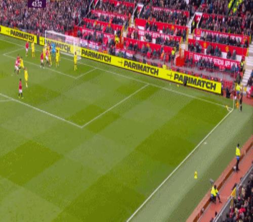 于是在30分鐘后,曼聯(lián)就形成了多打一人,這在主場是清晰的優(yōu)勢,所以在第38分鐘,曼聯(lián)通過中路配合和爭搶制造的角球,完成了比分的領(lǐng)先: