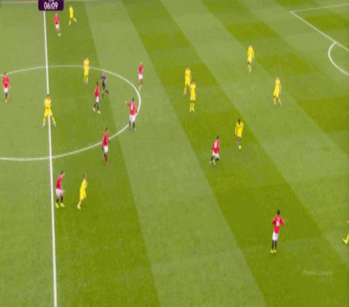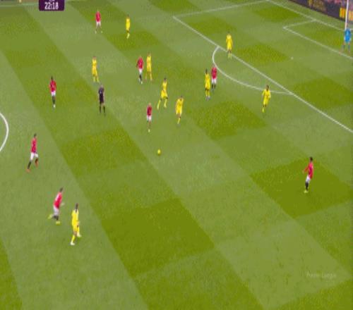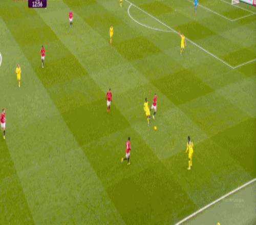 這看似是熱刺即將成功把曼聯(lián)憋在后場的前奏,因為在這里上身體的話,熱刺要么成功奪回球權(quán),要么用一次不會招致黃牌的犯規(guī)回到后場,結(jié)果曼聯(lián)用大腳找到了來到中路的阿瑪?shù)?迪亞洛,立刻形成了一次威脅進攻: