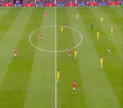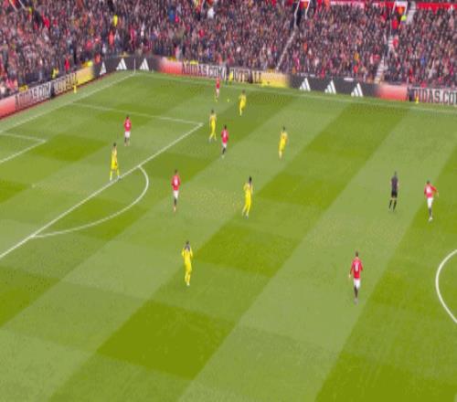 在此前三場比賽里,曼聯(lián)直接打身后的次數(shù)很多,但在接應(yīng)階段,用姆貝烏莫和庫尼亞吸引火力,讓阿瑪?shù)?迪亞洛進入中路接應(yīng)長球的這條線路,此前從未有過。