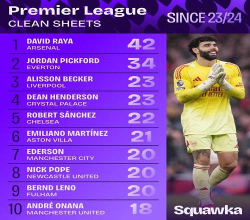 除了幾個破門實(shí)力出色的人物,在防守端加布里埃爾與薩利巴的中衛(wèi)組合固若金湯,幫助球隊(duì)延續(xù)了主場聯(lián)賽不丟球的紀(jì)錄。數(shù)據(jù)統(tǒng)計顯示,拉亞是近3個賽季零封次數(shù)最多的英超門將。