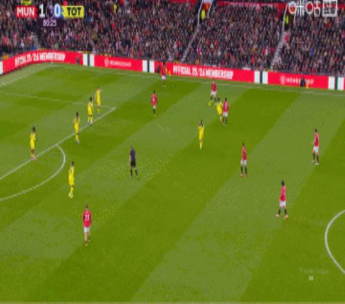 第二個(gè)進(jìn)球(第81分鐘)則展示了曼聯(lián)進(jìn)攻的層次感。在熱刺體力透支、防線松散之際,右后衛(wèi)達(dá)洛特從容起球傳中,后點(diǎn)插上的B費(fèi)用一記非常規(guī)的撞射將比分鎖定為2-0。此球讓B費(fèi)達(dá)成了為曼聯(lián)直接制造200球(104球96助)的里程碑。