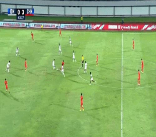 第43分鐘,趙旭堯遠(yuǎn)射,皮球蹭到帥惟浩腳上滾入球門(mén),4比0。