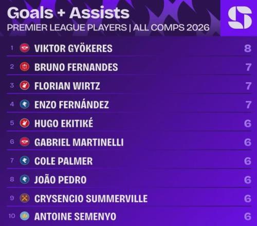 自2026年以來(lái),哲凱賴什已經(jīng)在各項(xiàng)賽事貢獻(xiàn)6球2助攻,是同期所有英超球員中各項(xiàng)賽事參與進(jìn)球數(shù)最多的(曼城和利物浦比賽開(kāi)打前)。