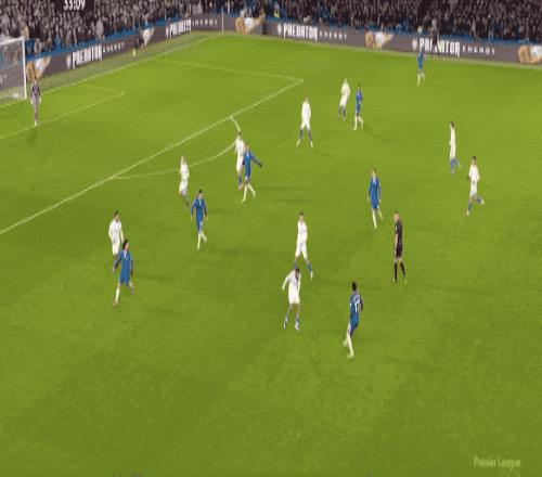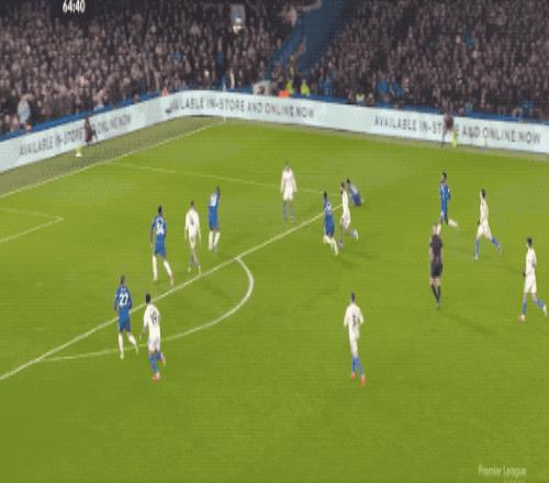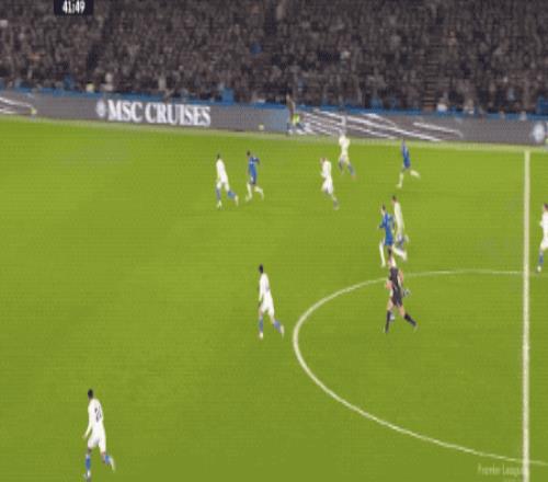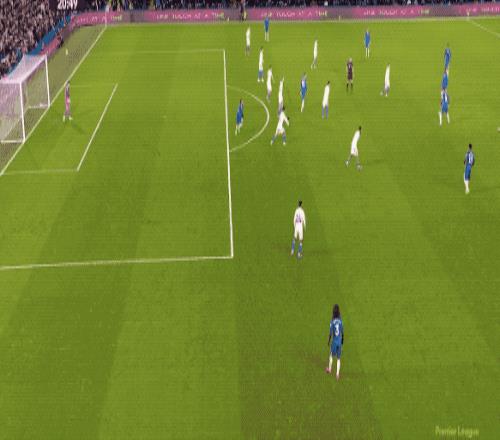 第53分鐘,切爾西的傳球流暢絲滑,埃斯特旺擺脫兩人防守起腳射門,皮球稍稍偏出。