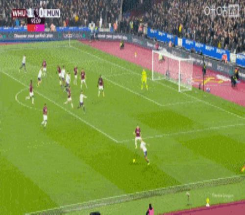 第49分鐘,鮑文傳中橫掃門前,紹切克近距離搶點破門,西漢姆聯(lián)1-0曼聯(lián)。