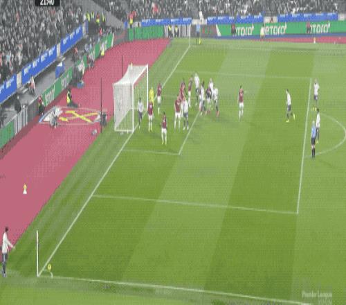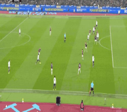 兩分鐘后,西漢姆聯(lián)還以顏色,薩默維爾禁區(qū)前橫向盤帶后兜射遠(yuǎn)角,拉門斯雙龍出海,將球擊出。