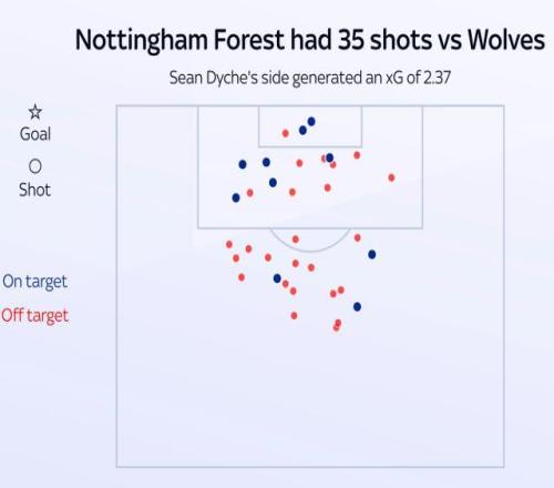 不過在最近的3輪英超中,該隊表現(xiàn)不佳,2平1負無一勝績。重點在于3個對手水晶宮(1比1平)、利茲聯(lián)(1比3負)和狼隊(0比0平)都算是保級戰(zhàn)的直接競爭對手,總計9分只拿到2分似乎對森林隊相當(dāng)不利。而在今天凌晨與狼隊互交白卷的較量中,諾丁漢森林總計有35腳射門,10次打正門框范圍,預(yù)期進球值高達2.55卻依舊無法取得進球,這大概就是讓老板忍無可忍的原因。在馬里納基斯看來,自己已為球隊找來了足夠多的進攻天才。
