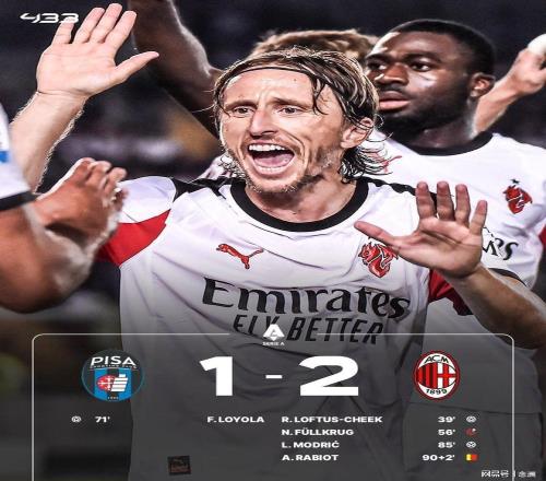 意甲第25輪,AC米蘭2-1擊敗比薩,暫落后榜首5分。奇克破門首開紀(jì)錄。拉比奧打進一球但是因菲爾克魯格手球犯規(guī)在先被吹,菲爾克魯格罰丟點球,洛約拉扳平,40歲的莫德里奇破門,拉比奧兩黃一紅被罰下。