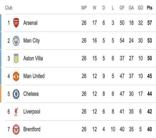 最終,阿森納客場1比1布倫特福德,只收獲1分,領(lǐng)跑優(yōu)勢被曼城縮減成4分。