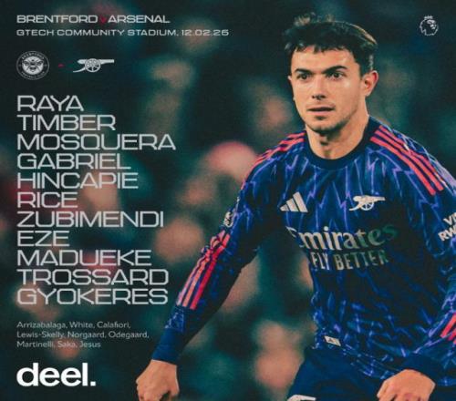 阿森納陣容(4231):拉亞/廷伯、莫斯克拉、加布里埃爾、因卡皮耶(81’卡拉菲奧里)/蘇維門迪、賴斯/馬杜埃凱(70’薩卡)、埃澤(46’厄德高)、特羅薩爾(81’馬丁內(nèi)利)/哲凱賴什