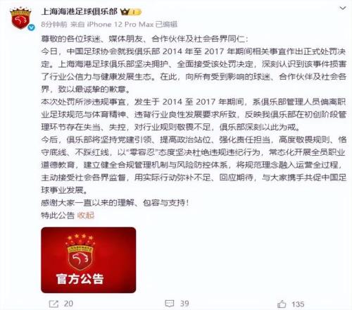 不得已之下,上海海港只能“隨大流”,王小平在2022年反腐風暴中落馬,他被查出涉案金額645萬人民幣,其中上港“上貢”了30萬人民幣。