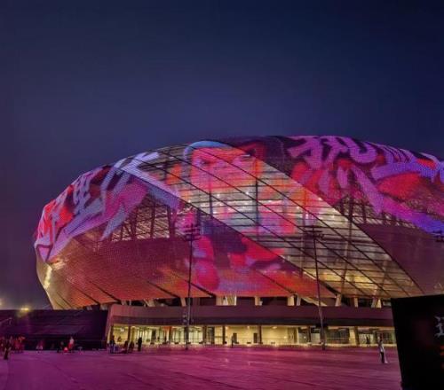 據(jù)了解,到了晚上,龍興足球場(chǎng)外觀還會(huì)在LED燈的輝映下發(fā)出漂亮絢麗的光芒。周先生表示:“這是龍興足球場(chǎng)的一大特色,這個(gè)球場(chǎng)擁有8.4萬(wàn)平方米,由48.3萬(wàn)顆LED燈組成的全世界最大單體LED點(diǎn)陣透明格珊屏,通過(guò)LED燈的調(diào)整,可以在球場(chǎng)外觀上變換出不同顏色和不同字樣,營(yíng)造最牛的主場(chǎng)氛圍?!?月10日晚,記者看到,隨著夜幕降臨,龍興足球場(chǎng)外觀變成了紅色,燈光勾勒出紅色卡通龍?zhí)咔虻男蜗?,還打出了“逐夢(mèng)重慶,熱血破界”的新口號(hào),為重慶銅梁龍征戰(zhàn)新賽季中超加油助威。
