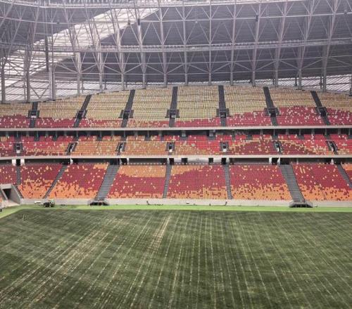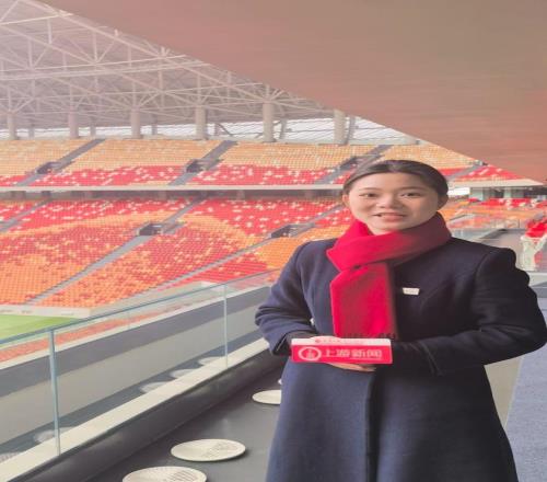 隨后,記者通過(guò)G1通道走進(jìn)了球場(chǎng),看到整個(gè)龍興球場(chǎng)的看臺(tái)大體呈現(xiàn)橙紅相間的顏色,現(xiàn)場(chǎng)講解員陳鑫告訴記者:“龍興足球場(chǎng)總建筑面積16.9萬(wàn)平方米,最大可容納6萬(wàn)多人看球,是重慶最大的專業(yè)足球場(chǎng)。座椅上橙紅相間的顏色,寓意重慶人民熱情火辣的性格,同時(shí)也代表了重慶火鍋——紅色代表辣椒、黃色代表牛油,白色代表水蒸氣,象征著龍興足球場(chǎng)的未來(lái)能夠蒸蒸日上?!?/p>