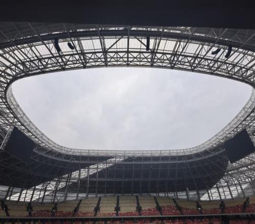在南看臺(tái)對(duì)面的北看臺(tái)有伸縮看臺(tái)區(qū)域,10日記者來(lái)到時(shí)伸縮看臺(tái)處于回收狀態(tài)。陳鑫透露:“這塊區(qū)域是為了方便演出,看臺(tái)回收狀態(tài)下空出來(lái)的區(qū)域大概有1200平米,可以用于舞臺(tái)搭建,避免壓到草坪;有球賽的時(shí)候這部分看臺(tái)可以放出來(lái),提供1800人的座椅。”